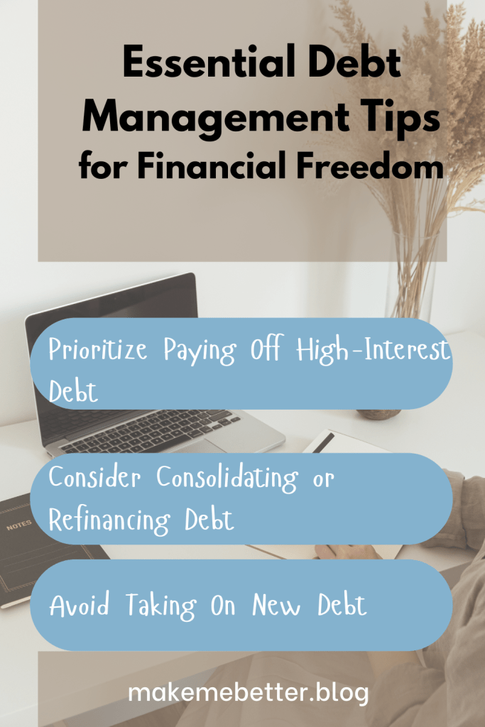 Effective debt management involves prioritizing high-interest debt repayment, considering consolidation or refinancing options, and avoiding new debt. By following these strategies, you can take control of your finances, reduce stress, and work towards financial freedom. Remember, the journey to becoming debt-free requires discipline, planning, and patience, but the rewards of financial stability and peace of mind are well worth the effort.