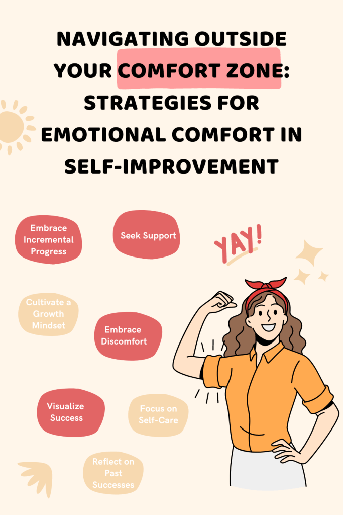 Stepping out of your comfort zone is essential for personal growth and development, but it doesn’t have to be overwhelming or intimidating. By embracing incremental progress, cultivating a growth mindset, visualizing success, prioritizing self-care, seeking support, reflecting on past successes, and embracing discomfort, you can create a sense of comfort within challenge and confidently navigate unfamiliar territory. Remember that stepping outside your comfort zone is a courageous act that holds the potential for growth, learning, and transformation.