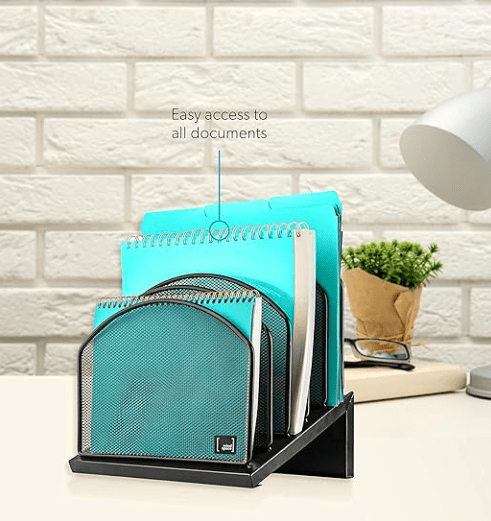 Mindspace offers a sturdy metal organizer with compartments of various sizes. It’s perfect for holding files, stationery, and even your phone.