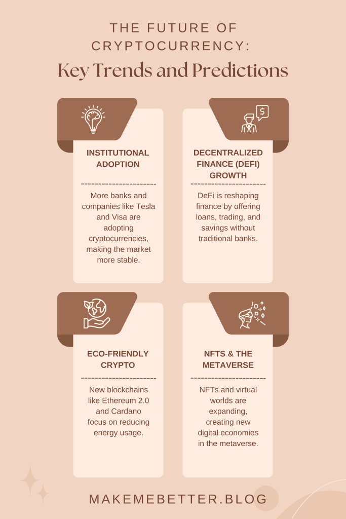 Cryptocurrency has come a long way from being a niche interest to becoming a significant player in global finance. While the market remains volatile, the potential for growth and innovation is enormous. As we look toward the future, several key trends are expected to shape the cryptocurrency landscape. These developments could impact how we trade, invest, and interact with money. Let’s dive deeper into these trends and predictions for the future of cryptocurrency.